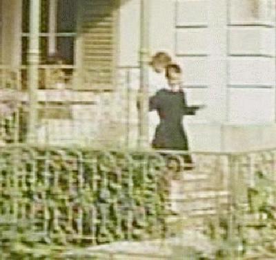 HBC had thought the title of this film was "A Day in the Country". A HBC reader tells us that the title is actually "Sunday in the Country". I am not sure what the original French title was. This movie takes place probably just before or just after World War I. The main character in the movie is an old impressionist painter who lives in the country. He is expecting a visit from his son and family (2 boys and a girl) and is getting ready to walk to the railway station to meet them. The painter has two grown children, a son named Gonzo and a daughter named Irene. There are a number of conflicts in this movie between the painter and his son, the painter and his daughter, and the two children. However, I won't go into the plot. If your interested in the movie you can check it out at Blockbuster in the foreign movie section. Anyway the painter throughout the movie has flashbacks to his life when his children were at home and his wife was alive. The first of these occur when he walks out of the gate on his way to the railway station. In the background you hear children laughing and someone calling Gonzo, Gonzo, Irene, etc. Then suddenly appears two little girls. They wear very pretty dresses, more like party dresses than play dresses, and hats decorated with ribbons and flowers. The youngest girl has very long hair and the older one long hair, but cut shoulder length. The actors are of course girls, but I think the youngest represents Irene and the oldest Gonzo as young children. The old man, however, doesn't seem to recognize them. These two children reappear in the movie when the old man is out walking with his son. Of course, the old man is the only one that sees them. After they disappear from view he asks his son where they went. Later in the movie there is also a flashback scene where the painter and his wife are having a picnic on the lawn. The wife calls, Gonzo, Irene several times. Finally, two children emerge from the house, a little girl wearing a dress, and an older boy wearing a skirted suit. The boy looks to be about 10 - 12 and the girl several years younger; the same relative age difference as the two little girls (?) seen earlier in the movie. There is also a painting of two little girls which the painter keeps for sentmental reasons. I assume, his children were the models for this painting.