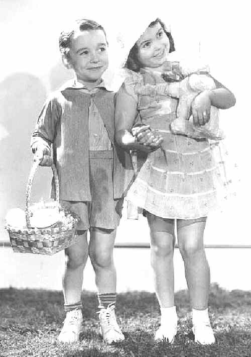 Figure 1.--Child actress, Charlene Wyatt made her film debut in Paramount's "Arizona Mahoney" in which Billy Lee also appears. But well before the film's release, the two kids who met on the set first appeared together hand in hand for a few publicity photos in time for Easter 1935. Billy would have been about 6 years old. |
