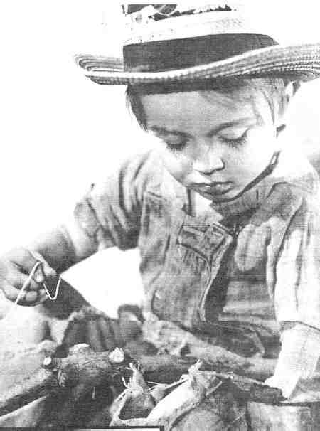 Figure 2.--Billy is seen here at home in Indiana wearing overalls. At 3-years of age he reportedly liked to fish and could bait his on home hook. |