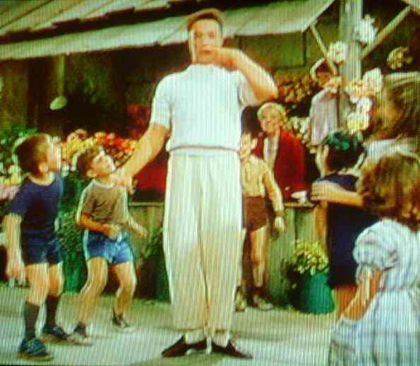 lessons and just fakes it in his one and only lesson. It was funny to see him stomping around making it up next to a kid who is taking it seriously. He fakes it again for his parents when they ask him to show them what he has learned. They don't know his stomping around from real Irish dancing. The limited mention of Irish dance in films reflects thefact that it was virtually unknown outside the Irish community until the appearance of River Dance.