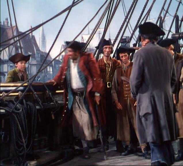 The 18th cebtury costuming I have noted in the film seem reasonably accurate. The interesting aspect of the costuming is that the book is set in the mid-18th century before children's clothes had been invented. Note that Jim wears essentially the same clothes as the men in the film.