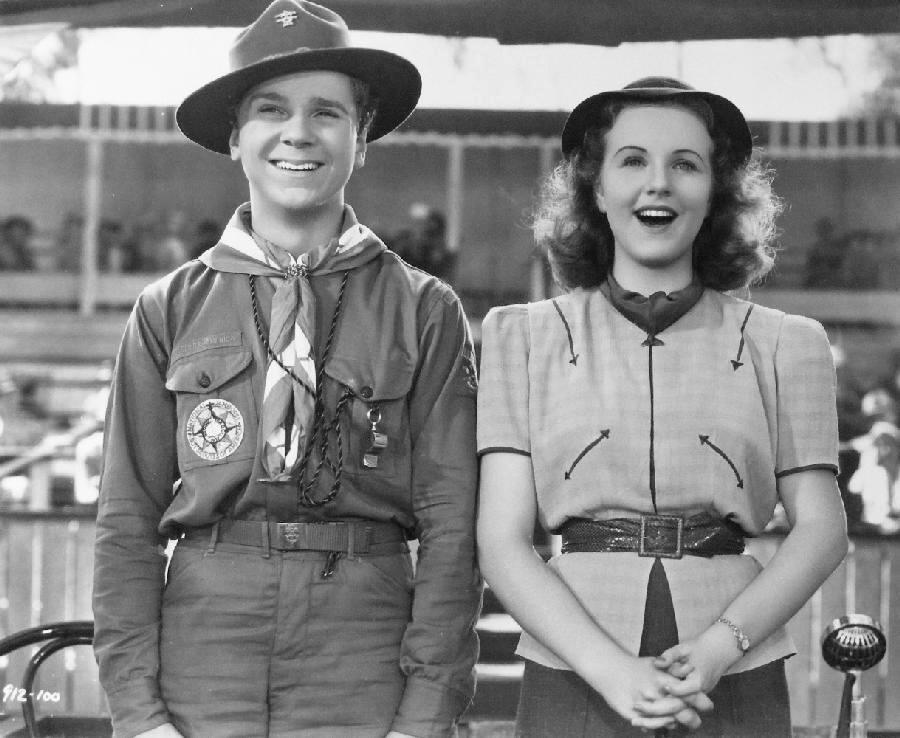 This Deanna Durbin vehicle has a Scout theme, but weaves in the omnious events unfolding in Europe during the late-1930s. A suave overseas journalist, Vincent Bullit, has returned home after covering the bloody Spanish Civil War. The newspaper magnate who hired him, Bill Fullerton, now wants to send him East to cover the valiant Chinese resisting the Japanese invasion. Fullerton invites Bullit to the peace and quiet of his own home. There he is to rest up by writing a series of articles about developments in Europe. Enter Diana Durbin playing Fullerton's 15-yearold adolescent daughter Alice who develops a crush on Bullit. Her boy friend, Boy Scout Ken Warren, played by Jackie Cooper, is quickly out of the pictgure. The Fullertons, Ken Warren, and Bullit himself do all they can to discourage the love struck Alice who is at 'that certain age.' At the beginning of the film, Alice sings a song called 'Be a Good Scout'. It is sung at a Scout Jamboree. Durbin and the Scout troop she is helping are doing a concert to raise money so that a poorer Scout Troop can go to summer camp. Alice helps out by giving permission to use the family home to rehearse. Jackie Searl also appears. He was about 18 yeats old and at the end of his boyhood roles..