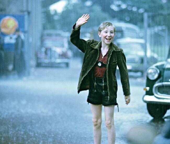 Matthias wears a variety of garments. He wears a charcteristically German cap. He has short lederhosen much of the time with ankle socks. Some other boys wears kneesocks. He also wears a jacket that almost comes down to the bottom to his shorts. He sometimes wears long pants. The other boys wear a variety of shorts, mostly knee length, but a few wear the very short length that Matthias does. Louis Klamroth who played Matthias apparently didn't care much for the lederhosen. When interviewed about the film, Louis called them "hot pants" lederhosen and kept tugging at them when he was sitting down because they were so short. The actor who played his older brother, was in a band and wore American style clothes and had a 50s American haircut which illustrated the German fascination with American culture, especially music.