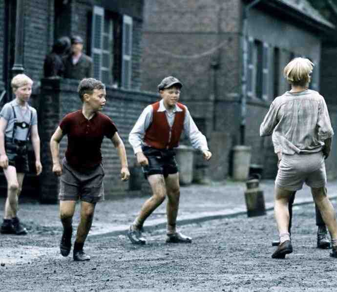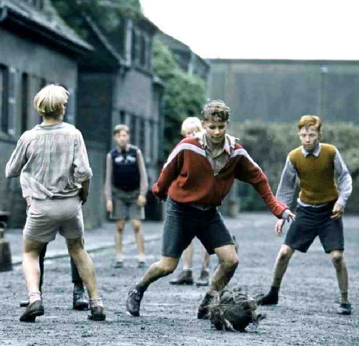 Matthias wears a variety of garments. He wears a charcteristically German cap. He has short lederhosen much of the time with ankle socks. Some other boys wears kneesocks. He also wears a jacket that almost comes down to the bottom to his shorts. He sometimes wears long pants. The other boys wear a variety of shorts, mostly knee length, but a few wear the very short length that Matthias does. Louis Klamroth who played Matthias apparently didn't care much for the lederhosen. When interviewed about the film, Louis called them "hot pants" lederhosen and kept tugging at them when he was sitting down because they were so short. The actor who played his older brother, was in a band and wore American style clothes and had a 50s American haircut which illustrated the German fascination with American culture, especially music.