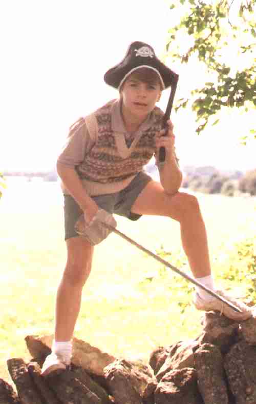 Figure 2.--Matthew as Dick is seen here in a pirate scene. I'm nort sure how common plimsols were in the Blyton books. |