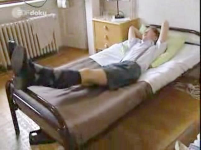 A reader reports, "I found two shots yesterday from a German documentary, "Die Harte Schule" (2006), that recreates the experiences of modern German children (teenagers of 16 mostly) trying to live like schoolboys in boarding schools did during the 1950s (strict rules, customs, and clothing). It is not entirely convincing historically because this school is co-educational, and most German boarding schools up to the 1950s were single-gender schools, I am told. But these photos are rather