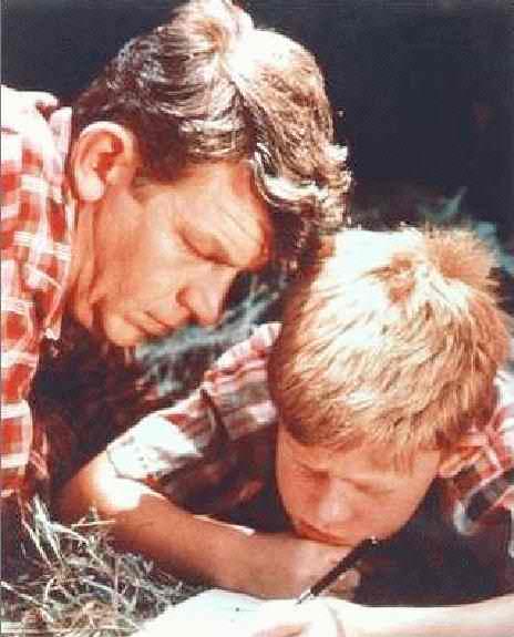 Opie (Ron Howard) also made an important contribution. Ronnie had played Winthrop, the boy with a lisp, in "The Music Man" (1962). This was another story about small-town America and made Ronnie a natural for Opie. He was great little actor, especially when he was younger. He was always impeccably well behaved. He sometimes had important roles. He and his friends always wore long pants, almost always jeans. Quite a few episides prominently featured Opie, incluing the first. Andy sees that a woman is needed to help with Opie when Rose, their old housekeeper, gets married. He asks Aunt Bee (Francis Bavier) to come help raise Opie. Litle Opie, however, refuses to accept Aunt Bee at first. Young children are ofren resistant to change and Aunt Bee does things differently than Rose. Then Aunt Bee lets Opie's paraqueet escape. Just as Aunt Bee is about to leave, however, Opie stops because he decuded she needs Andy and him to take care of her. Ronnie of course went on to "Happy Days" and then to become an important Hollywood producer.