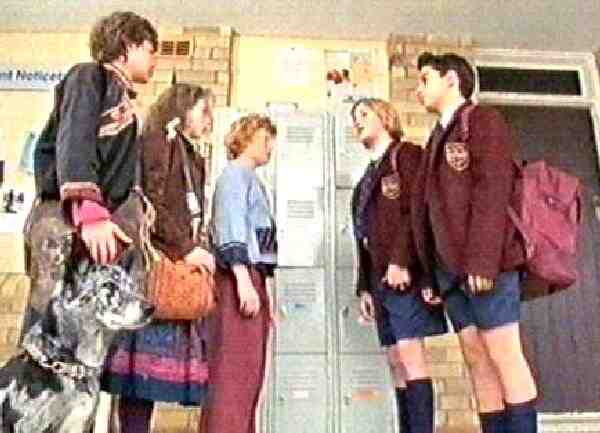 An Australian reader writes, "I have heard of this series but never have had the chance to watch it. By the look of the posh school uniforms I would accertain the era to be 1996 onwards as the shorts are a tad baggy on the long haired schoolboy. [HBC note: I am not sure the school is a posh private school. I think it may be a local state school with a traditional uniform.]
