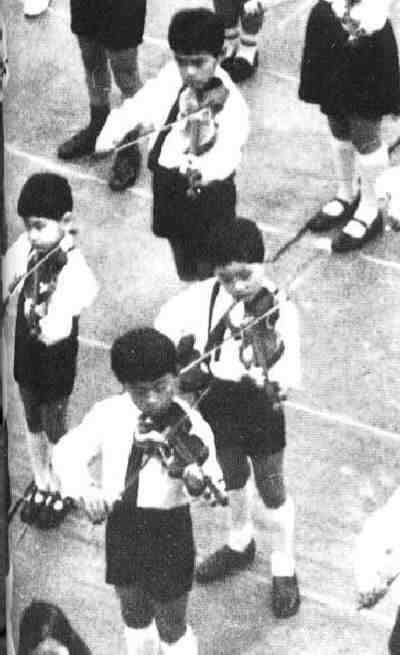 Figure 2.--These Japanese children are performing in a mass Suzuki concert in the early 1970s.