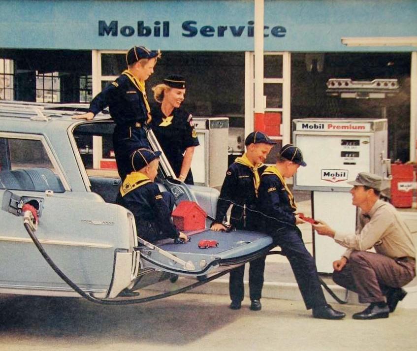 Scout policies and trademark rules have limited the use of Scout uniforms, although there has been some usage. Here there are major differences between regulations in the many different countries where Scouts function. The best known American ads with Scouts were Coca Cola ads in the 1950s and 60s. Here we see Mobil ad with Cubs (figure 1).