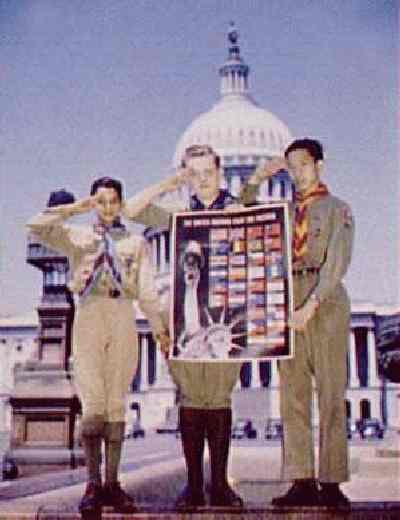 The only significant American boys' uniformed group know to HBC in the 1940s was the Boy Scouts. The BSA in 1940 used royalties from Irving Berlin's God Bless America to finance urban Scouting. Scouts in 1941 begin a campaign to sell Defense Bonds and Stamps. The Webelos rank created in Cubbing was created in 1941. The Philturn Ranch in 1941 was renamed the Philmont Scout Ranch. "Uncle Dan" Beard passes away in 1941. America was drawn into the War with the Japanese bombing of Pearl Harbor in December 1941. Scouts in 1942 started a recycling campaign for the war effort. James West retired in 1943. The first Silver Antelope awards was presented by a region in 1943. The first first Blue and Gold (Cub Scout) banquet was held in 1943. The BSA in 1944 began the World Fellowship Fund to help Scouting in war-torn nations. Scouting had been supressed by both the NAIZs and Soviets in the countries they occupied.