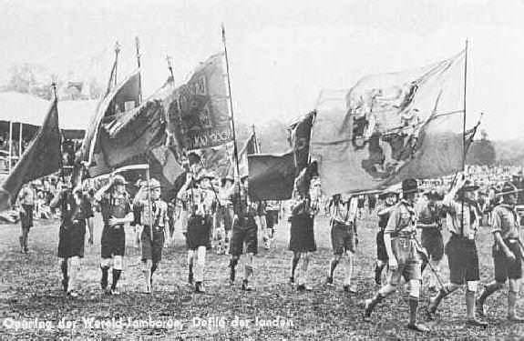Figure 1.--This photograph shows Flemish Catholic Scouts (VVKS) at the World Scout Jamboree in 1937. Click on the image for more information. |