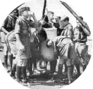 Short pants had been worn by boys in the late 19th century, but they were mot widely worn and were mostly worn by younger boys. Note that short pants differeed from kneepants, which were widely worn, in that they did not have three buttons at the knee hem and were worn with kneesocks and not long stockings. The original shorts, however, were mot much shorter than kneepants. Baden Powell ose to introduce short pants to Scouting as a practical comfortable garment, much more suited to active outdoor activities than the long stockings and kneepants more common at the time. Boys took to them immediately, in part because they had a macho, military image about them. Short pants were used by the British Army in tropical postings and for some units duing the Boehr War. Virtually every subsequent youth group proceeded to adopt short pants for the uniform. This was in part a reflection of how these groups used the Scouts as a model. It was also in part due to the fact that most European boys as well as boys in other countries mostly wore short pants.
