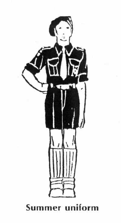 Les Compagnons de France (CF) was formed in the aftermath of the German victory (July 1940). The founder was a civil servant and scoutmaster. It became a major youth group whioh promoted health, physical exercise, outdoor activities, sport, and communal living. Vichy authorities approved the CF as an officially approved, voluntary youth organization for all of Unoccupied France (August 1940). It was for boys 15-20 years old to do work of "national unity" such as assisting with the harvest or clearing war damage. As much of the French Army was intered as POWs after the armistace was signed, there was a severe manpower shortage. The French Army secunded officers to serve as leaders. The CF had organized 350 companies with 18,000 members by January 1941. The CF attempted to recruit girls beginning in January 1942, but with little success. Jewish boys were at first allowed to join, but were excluded in May 1942 as Vichy's anti-Semetic policies became more pronounced. Membership reached 50,000 in early 1942, but then fell off rapidly as German reverses mounted and labor concriptions began to increase anti-German feeling. The political orientation of the CF is not easy to categorize. Support from Vichy authorities suggests a Fascist or at least right-wing orientation. Some have argued that the CF's focus on civic responsibility was more oruented to the Boy Scout movement. [Larkin, p. 91.] The CF was pro-Vichy, but never pro-NAZI. The Germans never trusted it and ordered the organization disbanded (January 1944). The uniform consisted of a dark blue shirt and dark blue long trousers or short pants. Boys wearing shorts wore white kneesocks. The boys according to the CF's official handbook wore navy blue berets, leather belt and tie. The color of the tie varied with the boys' ranks; beige for the lower ranks, purple for NCOs, yellow for junior officers, and navy blue for senior officers. this arraingment may have varied as other sources specify different colors.
