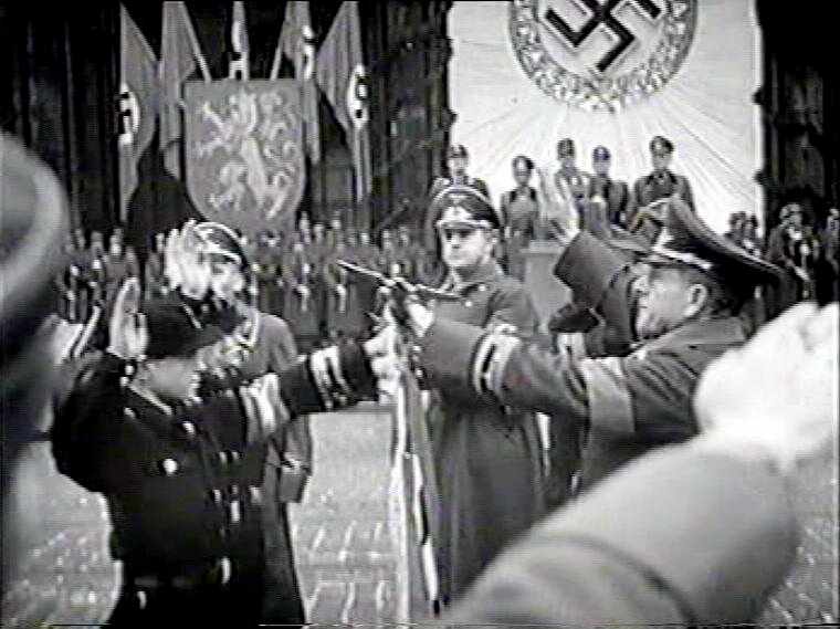 The NAZI Blutfahne (Blood flag) was a Swastika flag which had been used by the NAZI plotters trying to seize power in the abortive Munich Beer Hall Putsch (1923). The flag was the unit banner of the 5th SA Sturm which participated in the Purtch. The Munich police fired on the advancing group and the flag became stained by the blood. SA Storm Trooper Andreas Bauriedl who shot and killed and fell on the flag. After Hitler was released from Landsberg prison, the Blutfahne became perhaps the most revered symbol of the NAZI Party. It was carried by SS Sturmbannführer Jakob Grimminger at important NAZI Party ceremonies. The blood of the NAZI martyrs on the flag was seen as possessing sacred symbolic power. It was ritualized and sanctified in the ceremony which became known as "The Rite of the Blood Flag." The most notable ceremony occurred at the annual NAZI Party rallies at Nuremberg. Hitler would use the Blutfahne to annoit or santify new flags in a kind of priestly religious ritual. Honor guards would present new banners and Hitler would piously touch them with the new Blutfahne. The flag was kept at NAZI Party headquarters in Munich which became a kind if reliquary where it was protected by an SS honor guard. The last ceremonial usage of the flag occurred at a Volkssturm Induction Ceremony in Berlin (October 18 1944). SS Reich Führer Heinrich Himmler oversaw the ceremony. Also present were Keitel, Guderian, Lammers, Bormann, Fiehler, Schepmann and Kraus. This wa the last time the Blutfahne was used. It is not known if it still exists.