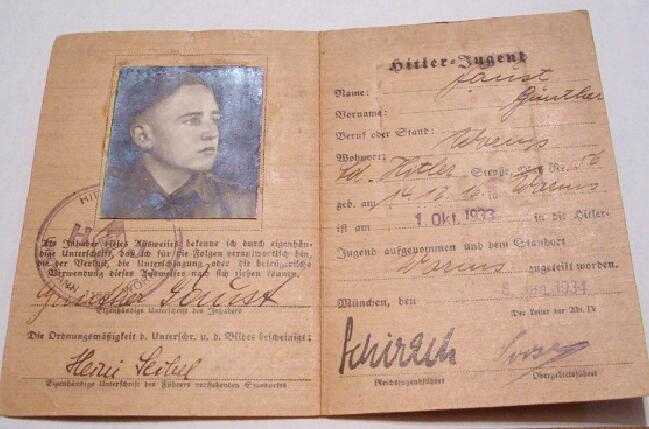 The boy's is at the top of the page on the right. Here it is difficult to make out the boy's name precisely. It looks to be something like Günther Faust. We can see that Henrei joined the HJ in October 1933 a few months after the NAZIs seized power. He was born December 14, 1916. Thus he was 16 years old, almost 17 years old when he joined the HJ. Of course we have no idea just why this boy joined the HJ. Perhaps he was attracted by some aspect of the NAZi regime. We note that he joined in October, perhaps his school influenced him or friends at school. (he was living in „Worms“ in