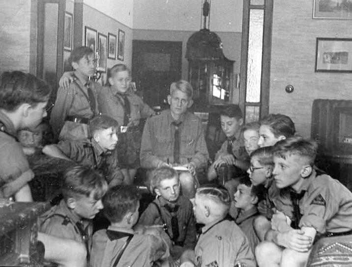 The album is not a complete record of his HJ experiences. We don't see much in the way of local events or marches. Nor do we see much in the way of daily meetings and lining up for inspections. These local activities must have be a large part of the HJ experiene. Trips were special events. But there could be only so many of them. There is one photograph that is a unit meeting at the home of one of the boys. Notice that there are no adults present. There is a caption, but it is difficult to make out.