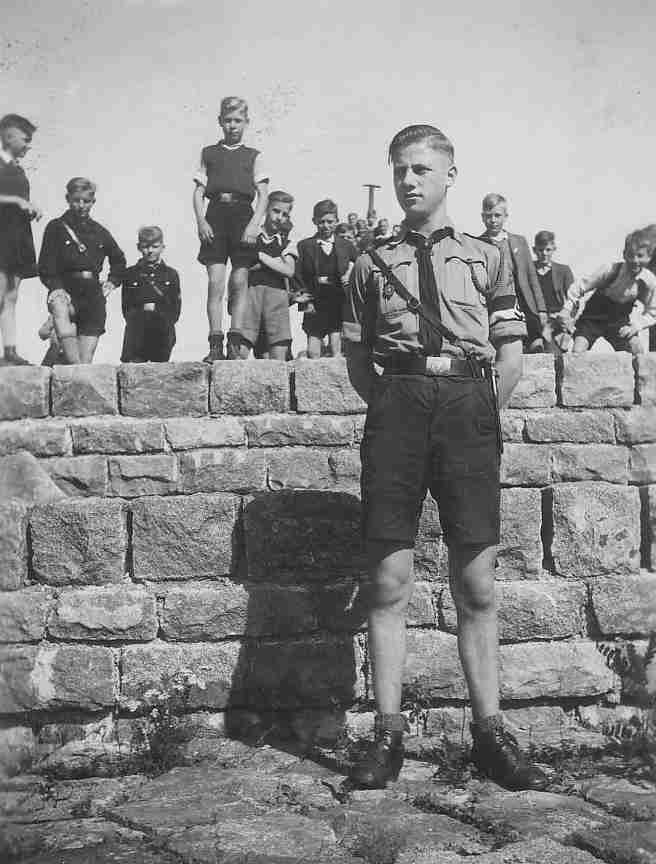 The affected hosiery to an extent. Boys of all ages wore both knee socks and ankle socks, often on a seasonal basis. Germn children joined the HJ at age 10 years so the yiunger boys woud have been 10-year olds. We see the boys during warm summer weather wearing ankle socks or rolling their knee socks down. While younger boys might wear knee socks and ankle socks, we also see them wearing long stockings up to about 12-13 years of age. This was also about the age tha boys made the transition from the DJ to the HJ proper. We rarely see boys more than about 13 years of age wearing long stockings. This vried from family to family. Different mothers had differing ideas about the age appropriateness of long stockings. Here the major concern was warmth for the yunger boys during the winter. As is the case generally, mothers are most concened about dressing the younger children warmly. Long stockings were also worn for formality, at least when dressing up in a suit for various occassions. As far as we know this was not the case for the Hitler youth. The boys wore knee socks for formality, in some cases white knee socks.