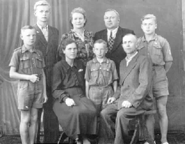 ![]() Figure 1.--We have little information about this family portrait except that the back of photo has the stamp (as best I can make out because it is blurred) "Zaktad Fotograficzay (?) Bydgoszcz, Šwl?toja?ka". Am told that the town was in the Polish corridor. It looks like three of the boys were members of a youth group other than the Scouts. The boys look to be wearing uniforms, although there are no kerchiefs nor badges. The boy on the right may have a sleeve badge. |