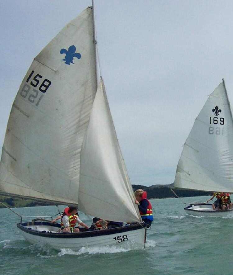 Figure 1.--Sea Scouts in New Zealand use a standard boat called a Cutter, 17.5 feet long. It can be rowed with 6 oars and a cox or sailed with a maximum of 7 crew. Seen here are 2 Cutters racing at Lyttelton, New Zealand on a days sailing expedition with the Sea Scout Troop in 2006. |