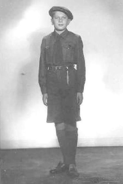 Latvian Scouts wore hats, shirts, neckerchiefs, and pants similar to the original Bfritish Scout uniform. The one unusual rather unusuaal aspect of the photographs we have seen is that quite a few boys wear long over the knee stockings rather than knee socks which were much more common for Scouting. This is something you rarely see with Scouts, but presumably relates to the northerly lattitude and the fact that long stockings were very commonly worn by Latvian children. We have noted Scouts wearing long pants, short pants and knee socks, or short pants and short socks, but rarely the long over the knee stockings. Long stockings were extensively worn by German, Polish, and Scandinavian boys so it is likely that some Scouts did wear them. We also notice Latvian Scouts wearing an unusual cap (figure 1), but thisi probably just because he did not have the proper uniform hat. Other wise the uniform seems quite standard for the time. The portrait here is undated, but must have been taken in the 1930s before the Soviet invasion. Also notice the boy's knife. Scout knivers were very important to early Scouts.