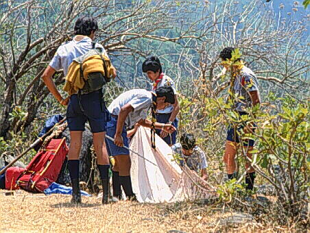 Figure 1.--Mecican Scouts on a camp out wear their formal uniforms. |