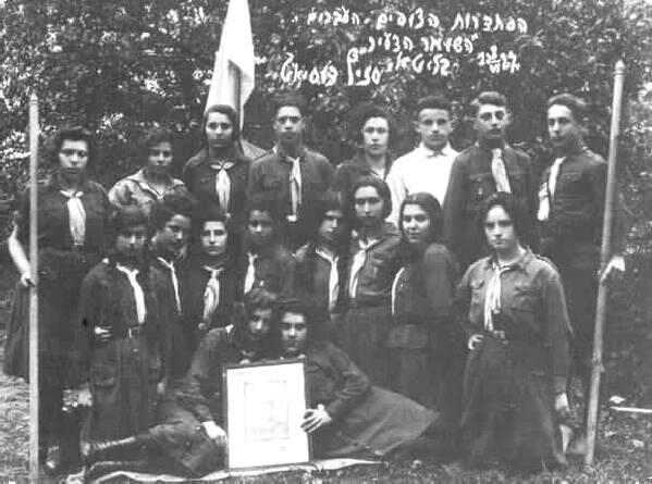 We have very limited information about Lituanian Souting at this time. Lithuania is a heavily Catholic country and we suspect that the Scouting movement was strongly associated with the Catholic church. We do note a separate Jewish Scouting movement before World War II and the NAZI Holocaust. We know very little about the Jewish Scouts. We do know that this was common throughout Europe. It dependended on how Scouting was organized. In America there were Troops organized through the schools which had Jews, but there were also Troops organized through the churches that did not. In Lithuania we do not know if the youth joining the Jewish Scouts did not because they were rejected or poorly treated in other Scout troops or because they wanted to be in a separate Jewish troop, perhaps both were a factor. We note here a mixed patrol of boys and girls. It is likely that other Lithuanian Scout groups were nox mixed. We are unsure if the mixed Jewish troop represents a different outlook toward gender or simply the smaller number of Jewsish youth.