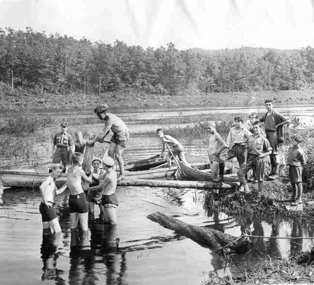 Another standard actibity at camp was water activities, including swiming and boating. Swimming was especially important at Scout camps.