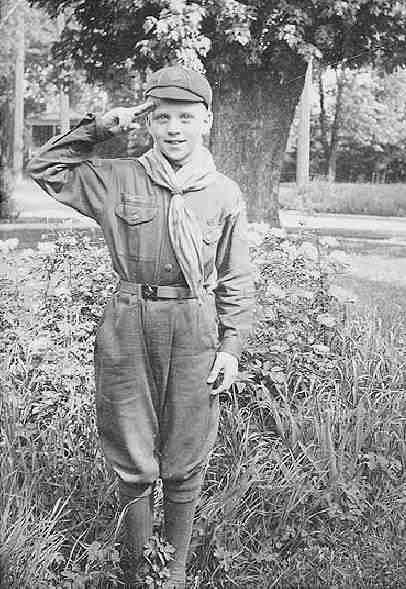 Knickers were very widely worn by American boys in the 1910s and 20s. In 1930 when Cubbing was founded, knickers were still very common, but during the 1930s declined in popularity. By the 1940s knickers were rapidly going out of style, especially after the early-40s. We still see boys wearing knickers in the early-40s and very few boys substituted other blue pants as would become common un the 1950s. The BSA responding to this shift changed the Cub uniform which had knicker pants. Following the Boy Scouts, the Cub knickers were dropped in the 1940s. Cubs were given the choice of wearing long or short pants. The rest of the uniform remained unchanges. Just the pants were changed. The kneesocks with two yellow bands that had been wore with knickers were retained to be worn with the short pants uniform. Most Cubs wore long pants. Some Cubs wore the short pants uniform, but in general the short pants prioved not very popular with the Cubs. And unlike the Scouts, Cubs did not attend summer camops where the short pants uniform was commonly required. And just because the uniform was changed, boys did not all suddently stop wearing the knickers. While they did rapidly become less common, we see a few boys wearing them into the late-1940s.