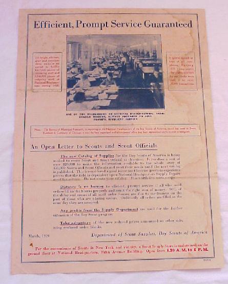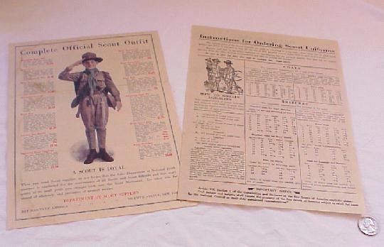 The BSA initially sold Scout uniforms and equipmet through its Department of Scout supplies. The Boy Scouts of America was incorporated in 1910. The United States Congress in 1916 granted a federal charter to the Boy Scouts to protect their name and to authorize uniforms similar to U.S. military uniforms. Thus no one could compete with the BSA in the sale of uniforms. BSA publications show that the mail order sale of uniforms and equipment was a major undertaking by 1919. The BSA bragged about their efficent office workers. Presumably this mail operation was begun almost as the BSA was established to make uniforms available to Scouts around the country. mail order suppliers were already well established in the United Sates and thus consunmers were used to ordering clothing, and just about every thing else including the kitchen sink, by mail.