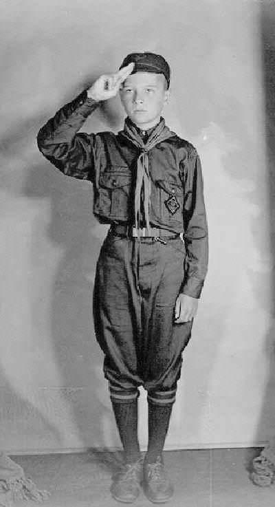 Lord Baden-Powell's designed the original Scout uniforms. The Scouts were not the first uniformed boy's organization. The Scout uniform introduced by Bade Powell included some unique feaatures. The boy's wore short pants and kneesocks rather than the kneepants and long stockings that most boys wore at the time. The kerchief or scout scarf also became a key part of the uniform. The original English Scout uniforms had a somewhat military look and was copied by the early Scouts groups in many other countries. The early American Scout uniform followed the English example as did Scouts with an even more military look. Most countries gradually introduced recognizeable national garments like berets in France and lederhosen in Germany and Austria.